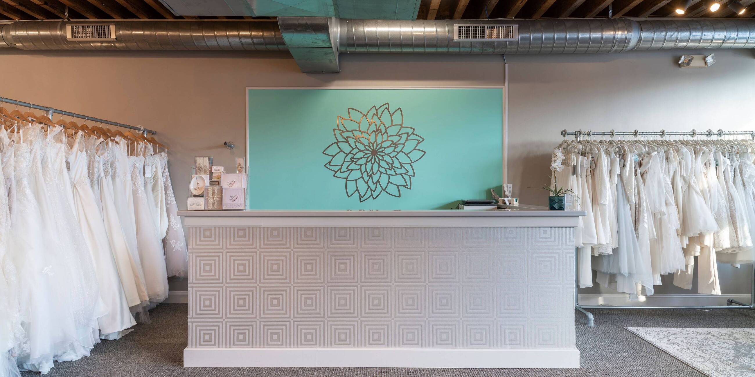 Proper undergarments are required when trying on our bridal gowns please.